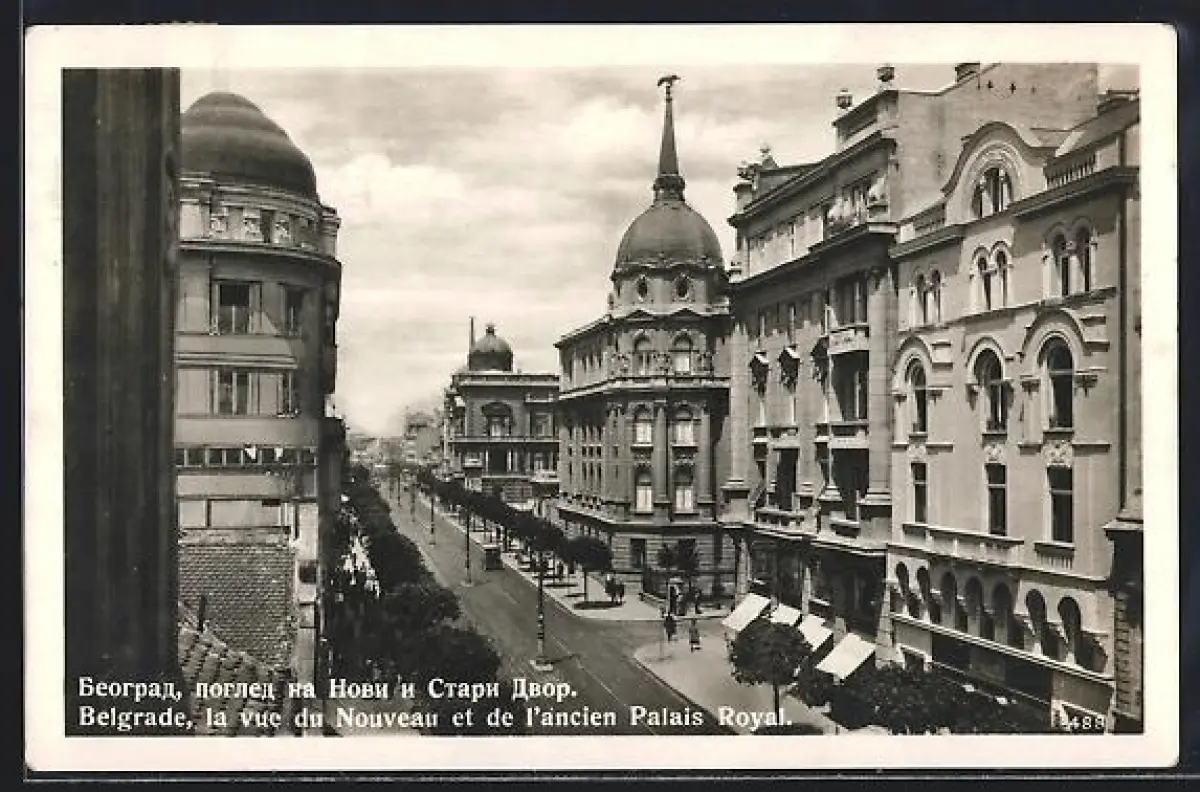 AK Belgrad, La Vue du Nouveau et de l`ancien Palais Royal