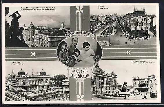 AK Belgrad, Roi Alexandre I. et son famille, palais de Ministère des Finances, des Forets et des Mines, Place Terazia