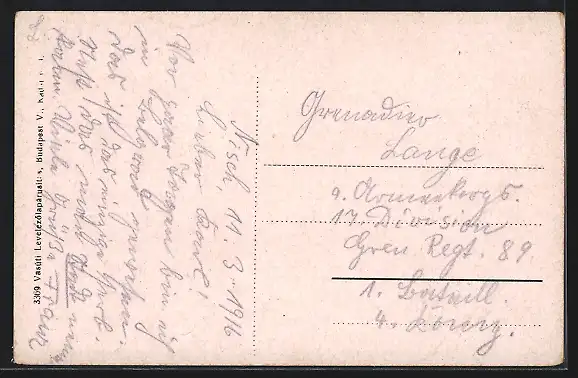 Personenbezogene Daten auf der Rückseite der Karte wurden durch blauen Textmarker unkenntlich gemacht. Die blauen Stellen sind auf die Vorderseite durchgeweicht und wirken sich negativ auf das Postkartenfoto aus