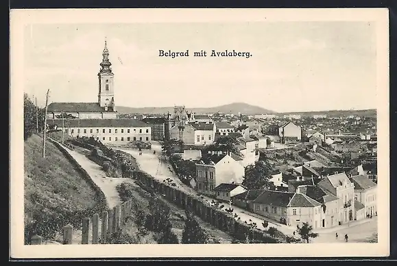 AK Belgrade, Generalansicht mit dem Avalaberg
