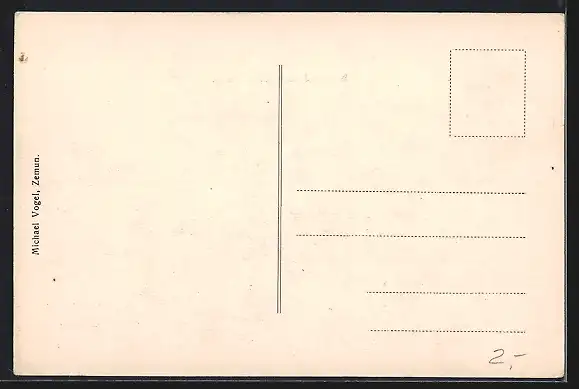 Personenbezogene Daten auf der Rückseite der Karte wurden durch blauen Textmarker unkenntlich gemacht. Die blauen Stellen sind auf die Vorderseite durchgeweicht und wirken sich negativ auf das Postkartenfoto aus
