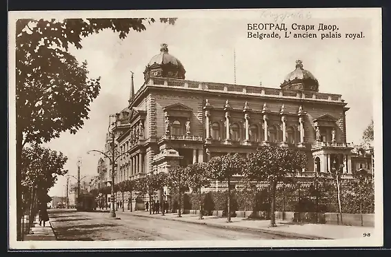 AK Belgrade, l`Ancien palais royal, Strassenbahn