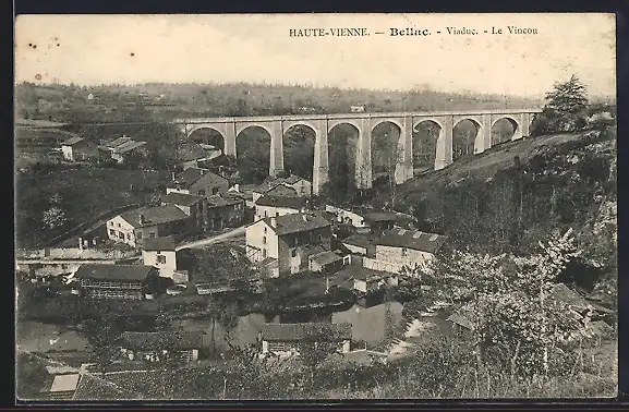 AK Bellac, Viaduc de Vincou et vue sur le village