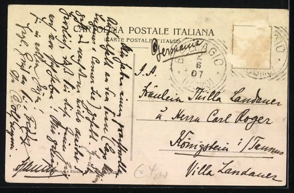 gelaufen 1907, Briefmarke entfernt, rückseitig Oberflächenschaden, guter Zustand