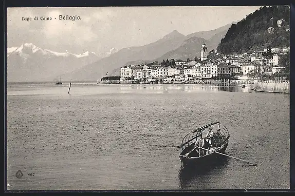 AK Bellagio, Lago di Como, Boot, Blick zum Ort