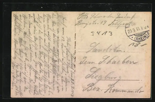 alte Ansichtskarte, gelaufen 1918, rückseitig Oberflächenschaden, Abriebspur li. oben, guter Zustand