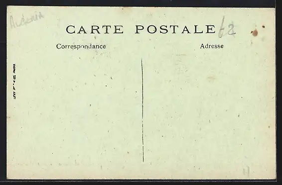 Personenbezogene Daten auf der Rückseite der Karte wurden durch blauen Textmarker unkenntlich gemacht. Die blauen Stellen sind auf die Vorderseite durchgeweicht und wirken sich negativ auf das Postkartenfoto aus