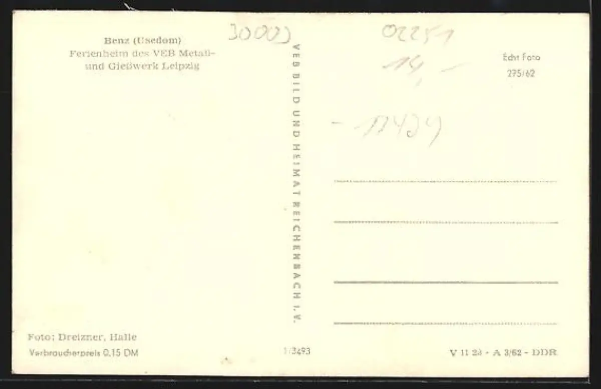AK Benz /Usedom, Ferienheim des VEB-Metall- und Giesswerks Leipzig