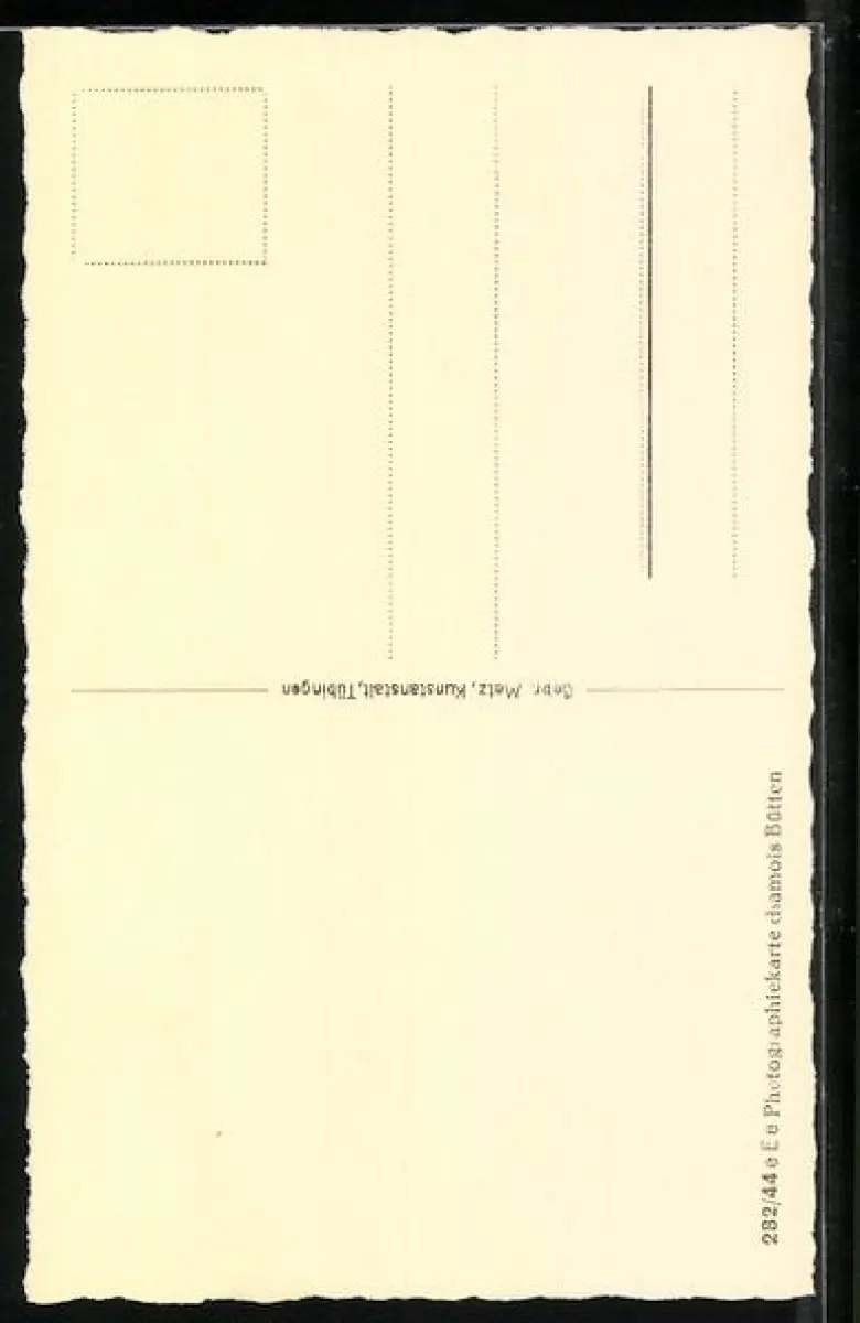 Personenbezogene Daten auf der Rückseite der Karte wurden durch blauen Textmarker unkenntlich gemacht. Die blauen Stellen sind auf die Vorderseite durchgeweicht und wirken sich negativ auf das Postkartenfoto aus