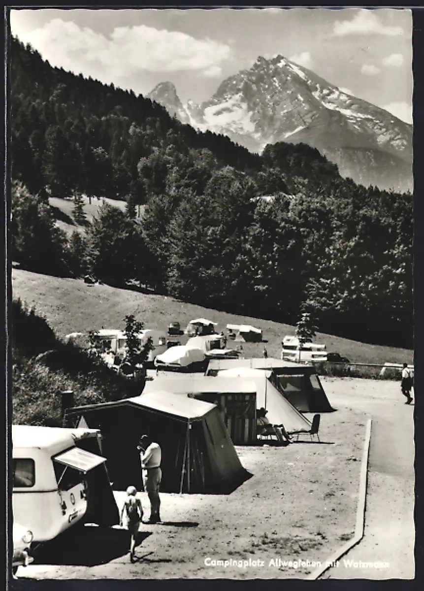 AK Berchtesgaden, Campingplatz Allweglehen mit Watzmann