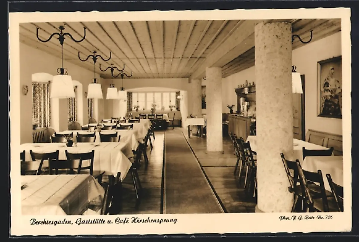 AK Berchtesgaden, Gasthaus und Café Hirschensprung, Inh. R. Brandl, Innenansicht