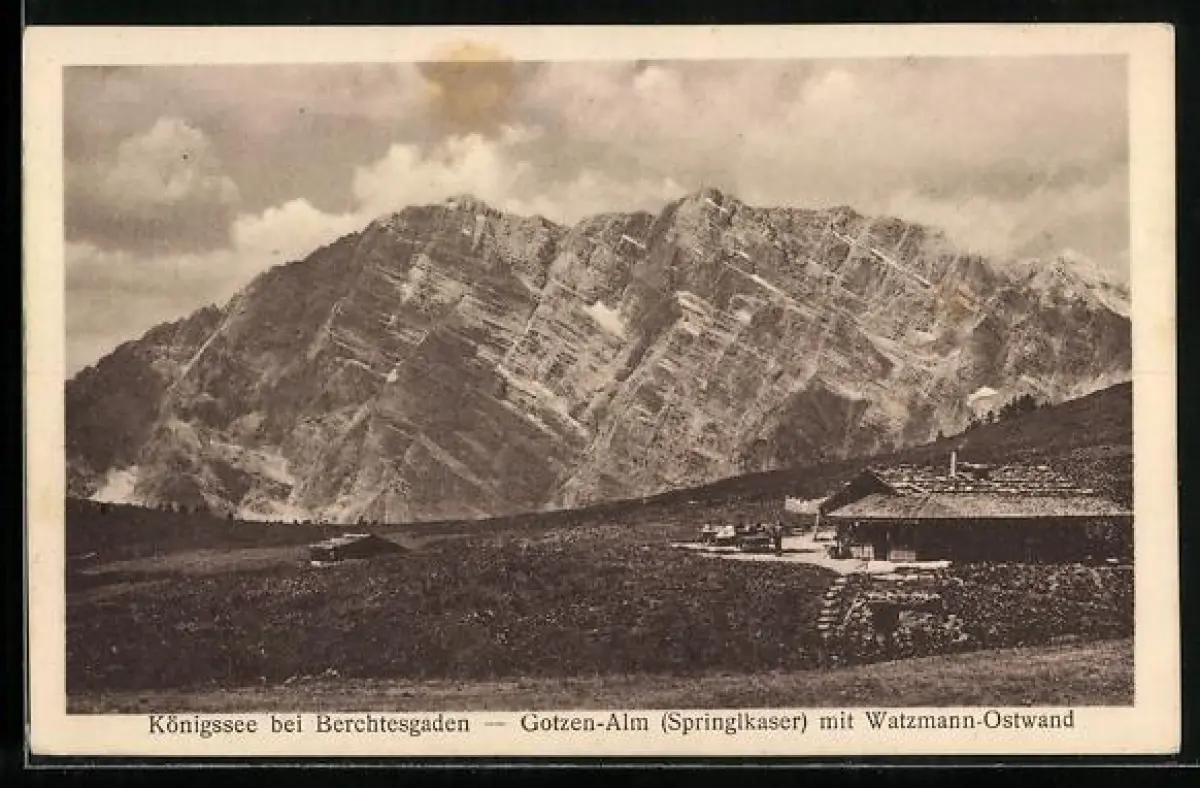 AK Berchtesgaden, Gasthof Gotzen-Alm mit Watzmann-Ostwand
