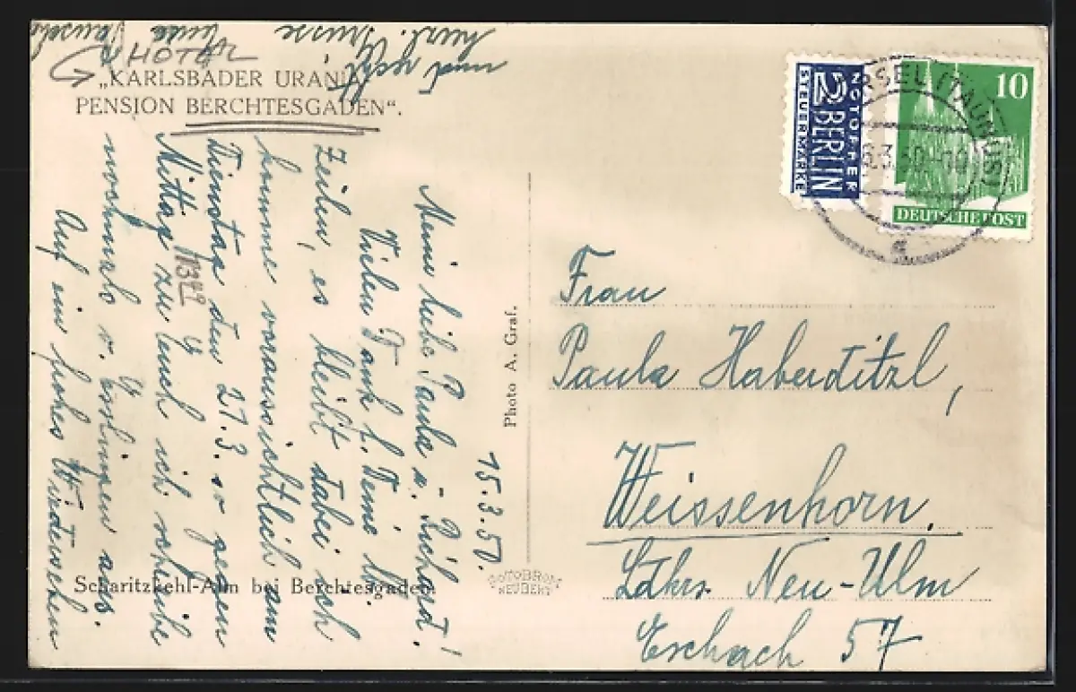 AK Berchtesgaden, Hotel Karlsbader Urania-Pension