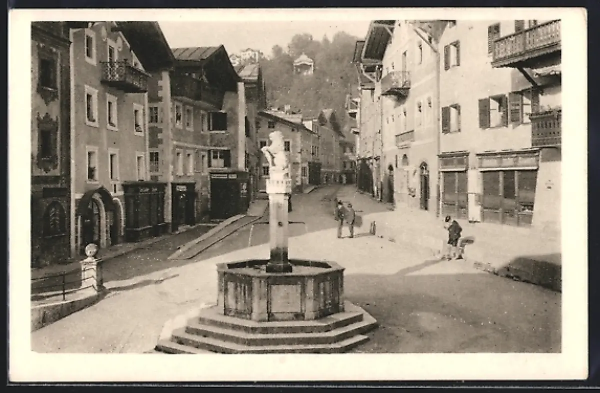 AK Berchtesgaden, Markt mit Brunnen und umliegender Bebauung