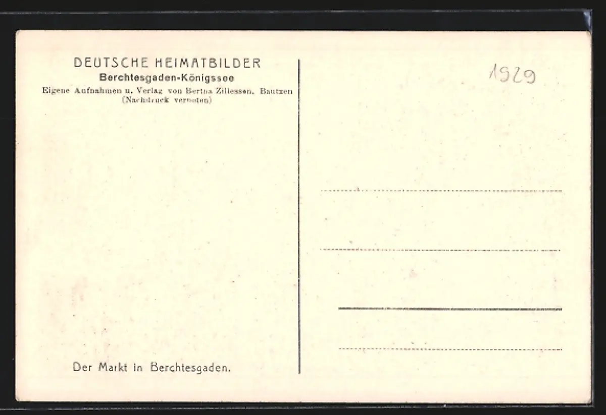 Personenbezogene Daten auf der Rückseite der Karte wurden durch blauen Textmarker unkenntlich gemacht. Die blauen Stellen sind auf die Vorderseite durchgeweicht und wirken sich negativ auf das Postkartenfoto aus