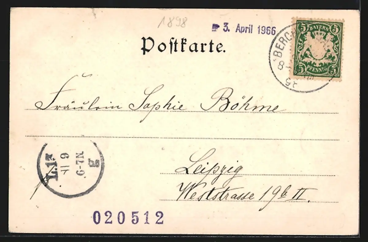 alte Ansichtskarte, gelaufen 1898, guter Zustand