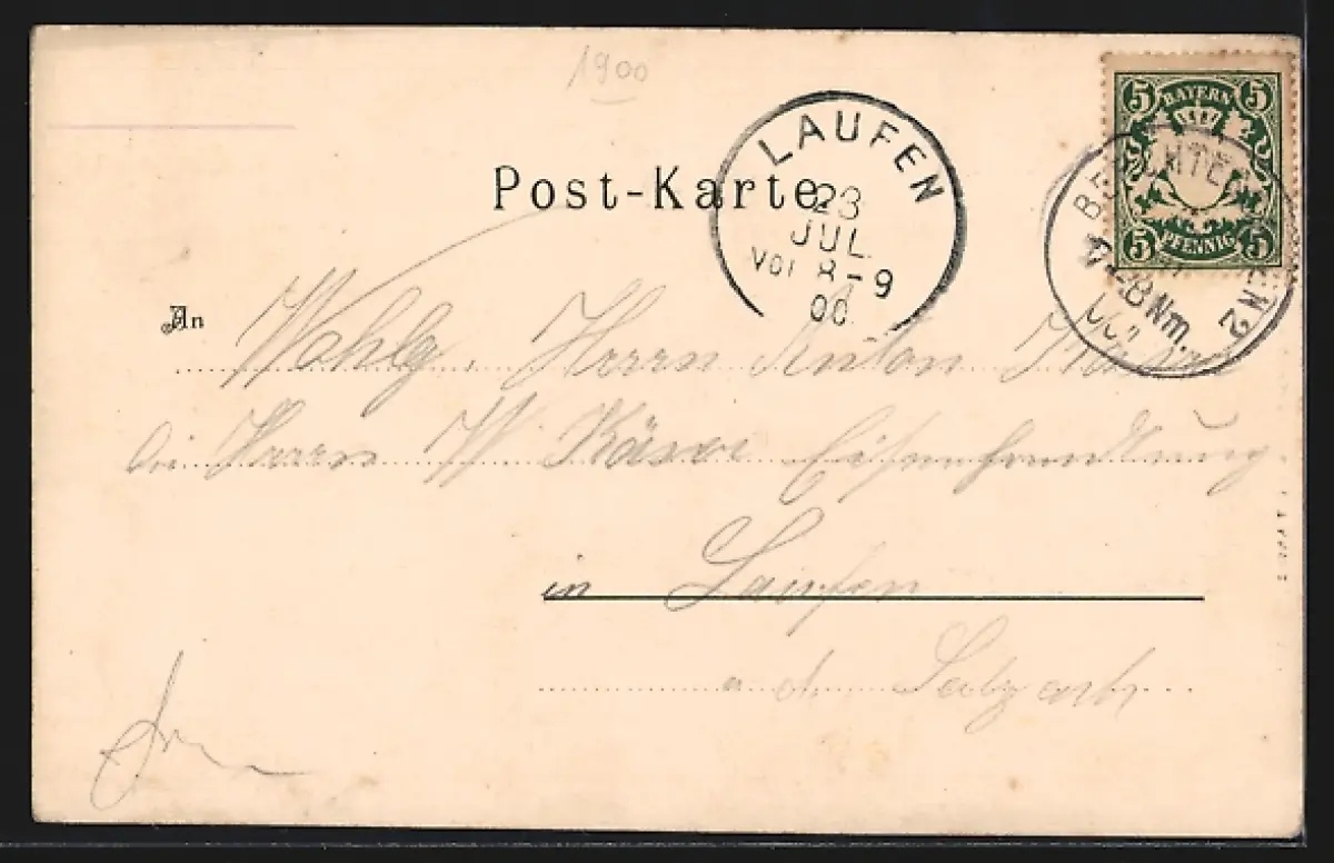 alte Ansichtskarte, gelaufen 1900, guter Zustand