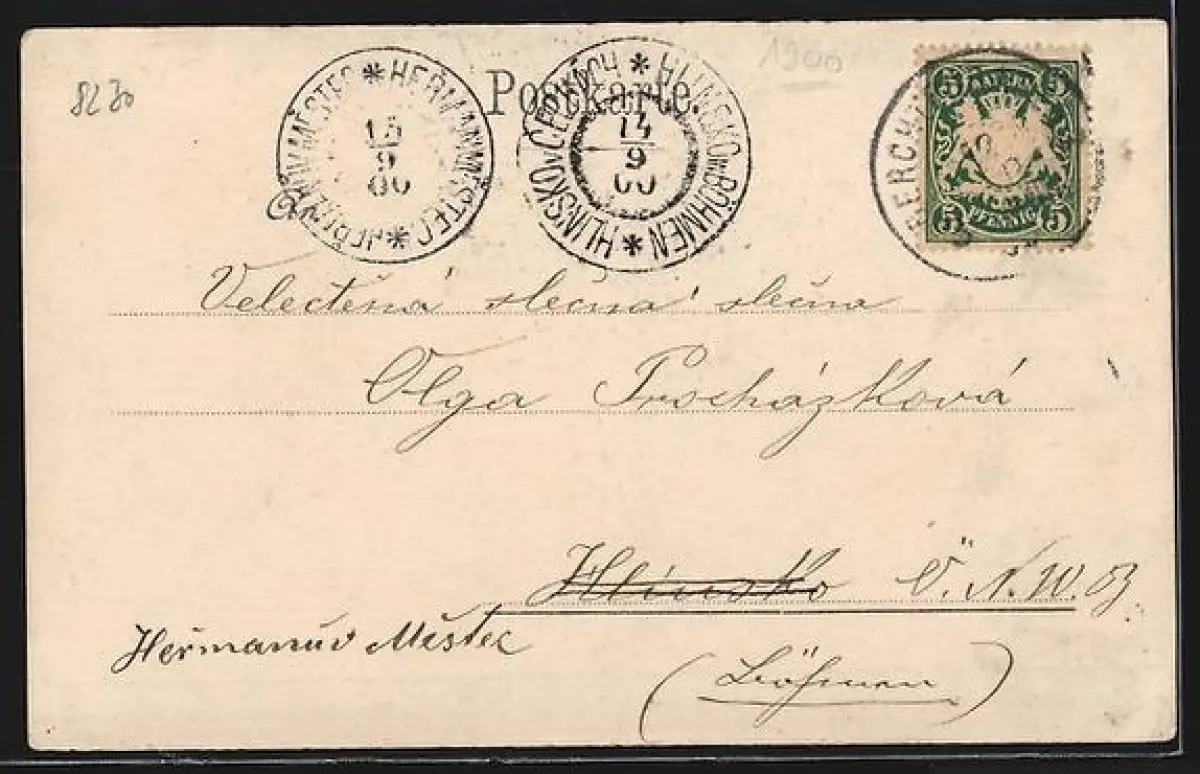alte Ansichtskarte, gelaufen 1900, Stempelspur, guter Zustand