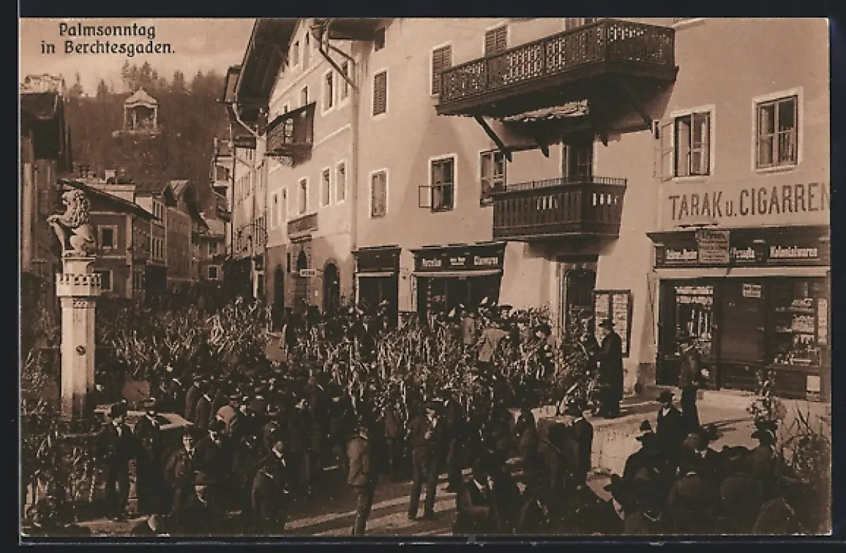 AK Berchtesgaden, Palmsonntag, Strassenansicht, Menschenmenge, Geschäfte