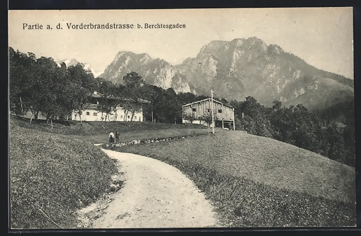 AK Berchtesgaden, Partie an der Vorderbrandstrasse, Berge, Landschaft