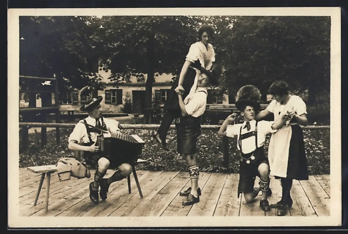 AK Berchtesgaden, Steierer Figurentanz, Gruppe in Trachten