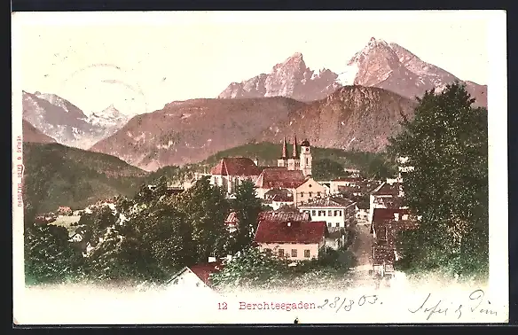 AK Berchtesgaden, Teilansicht mit Kirche