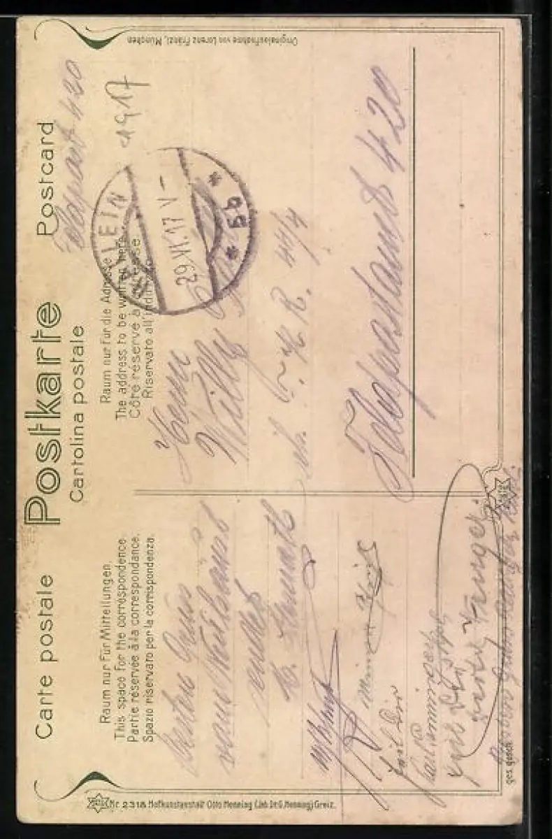 alte Ansichtskarte, gelaufen 1917, Abriebspuren Ecken, guter Zustand