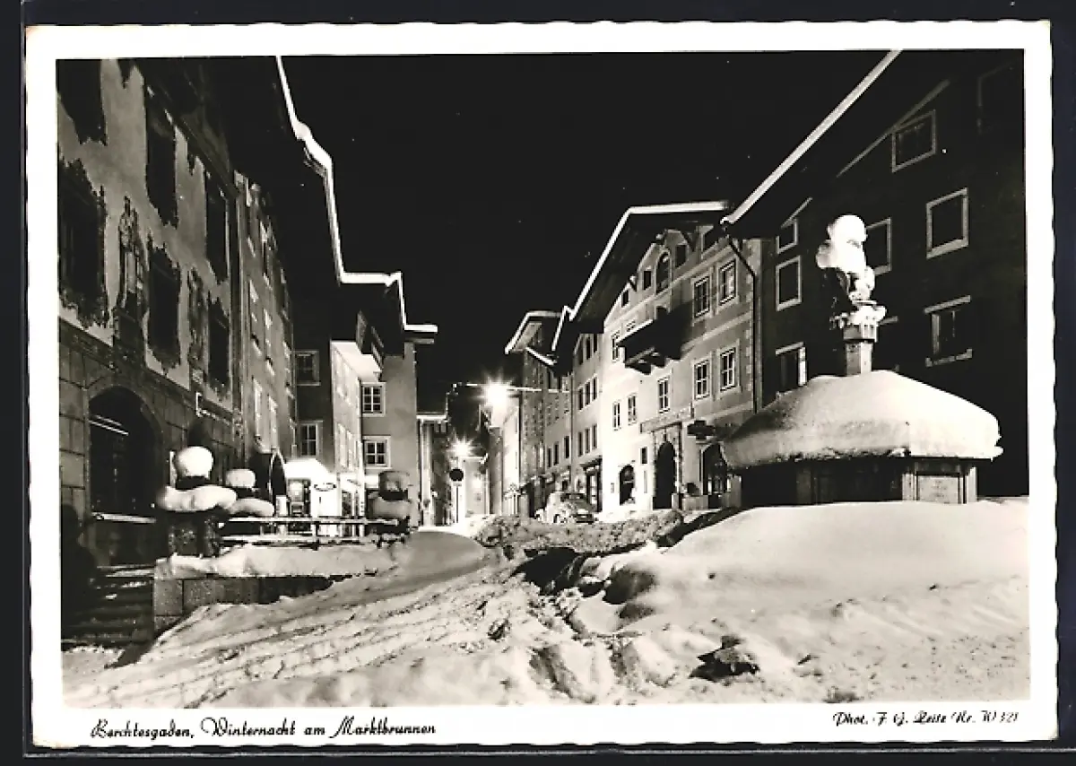 AK Berchtesgaden, Winternacht am Marktbrunnen