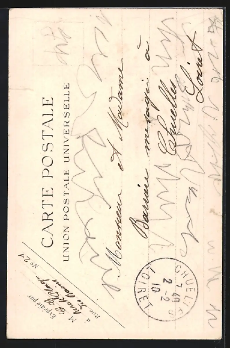 Personenbezogene Daten auf der Rückseite der Karte wurden durch blauen Textmarker unkenntlich gemacht. Die blauen Stellen sind auf die Vorderseite durchgeweicht und wirken sich negativ auf das Postkartenfoto aus