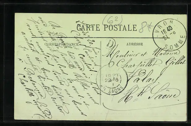 Personenbezogene Daten auf der Rückseite der Karte wurden durch blauen Textmarker unkenntlich gemacht. Die blauen Stellen sind auf die Vorderseite durchgeweicht und wirken sich negativ auf das Postkartenfoto aus