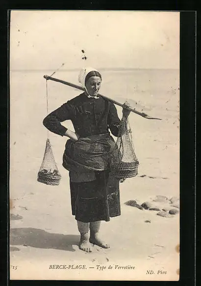 AK Berck-Plage, Type de Verrotière, Muschelsammlerin