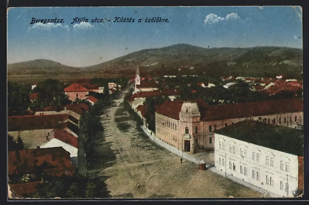 AK Beregszász, Atilla utca, Kilátás a szölökre