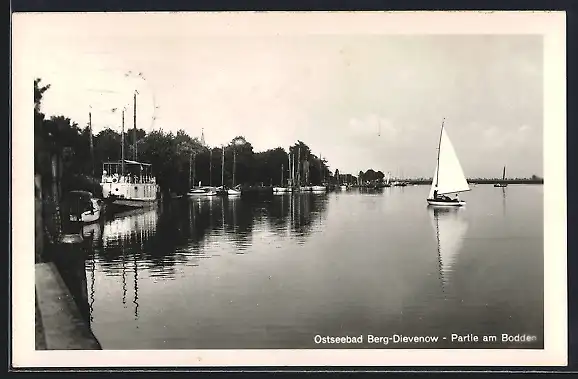 AK Berg-Dievenow, Bodden mit Segelboot