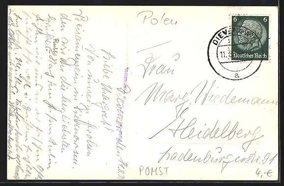 alte Ansichtskarte, gelaufen 1938, guter Zustand