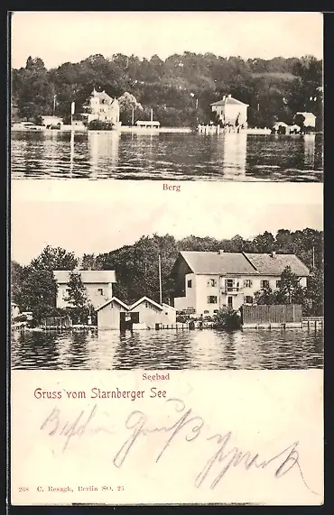 AK Berg b. Starnberg, Ortsansicht, Blick auf Seebad