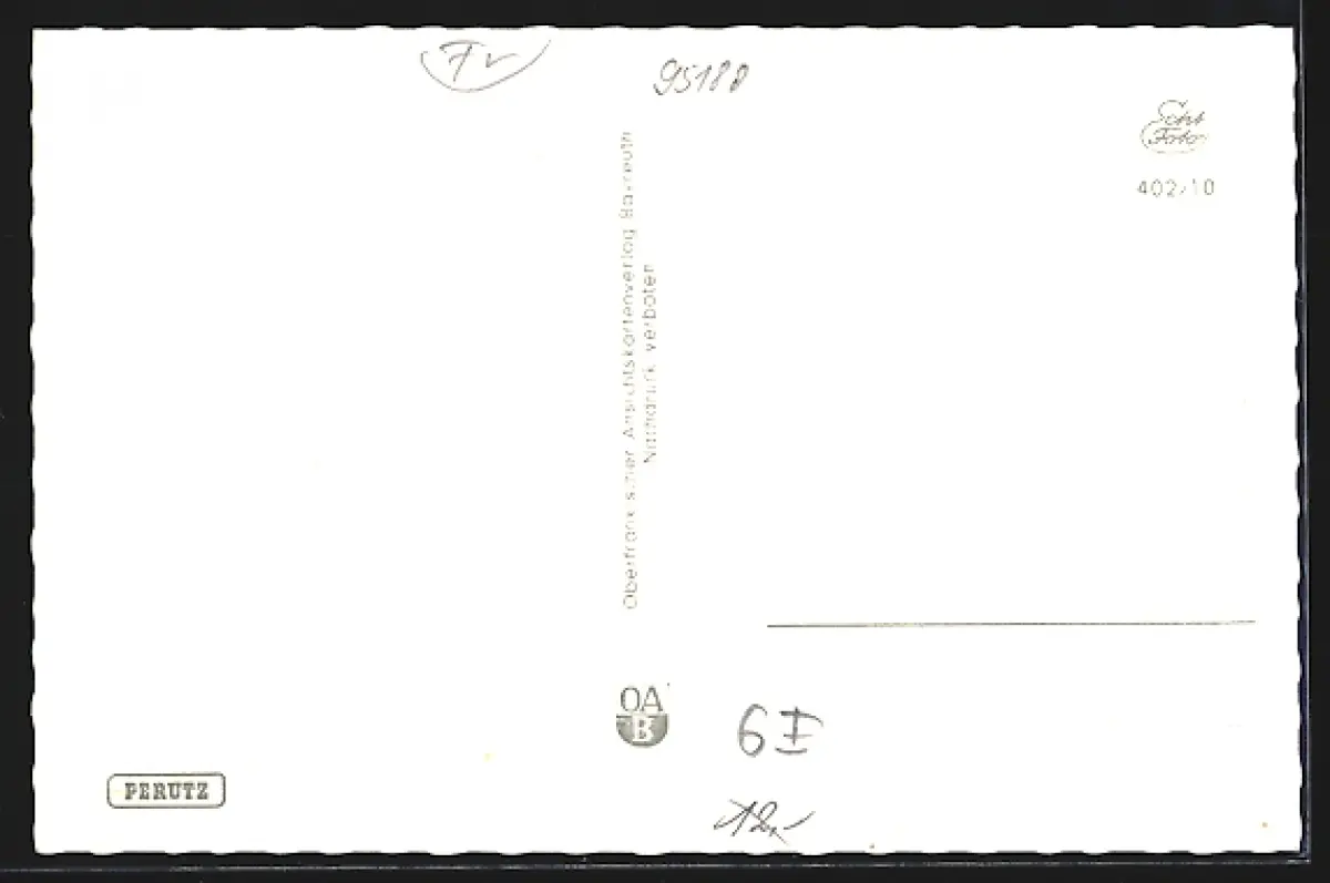Personenbezogene Daten auf der Rückseite der Karte wurden durch blauen Textmarker unkenntlich gemacht. Die blauen Stellen sind auf die Vorderseite durchgeweicht und wirken sich negativ auf das Postkartenfoto aus