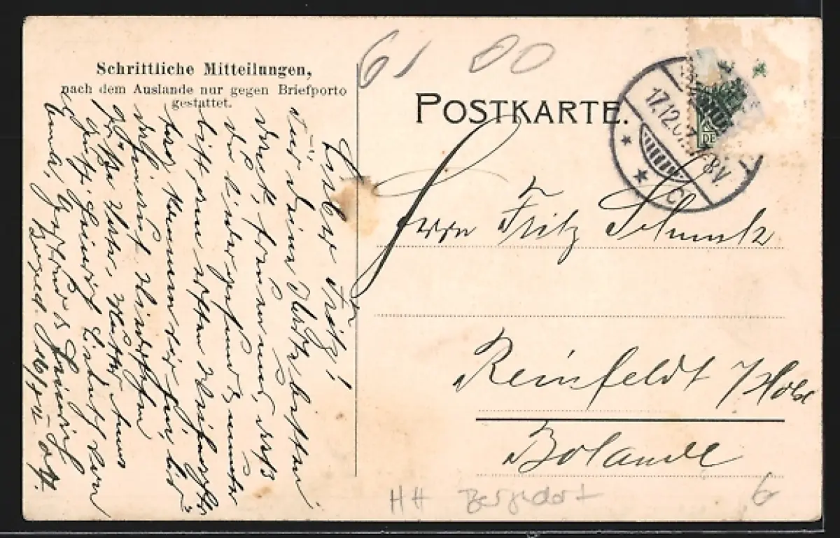 alte Ansichtskarte, gelaufen, Briefmarke entfernt, guter Zustand