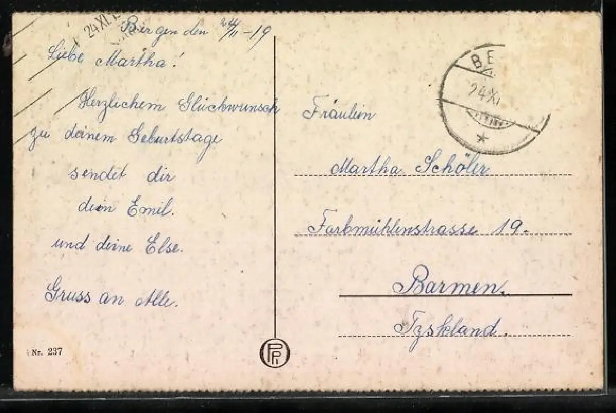 alte Ansichtskarte, gelaufen 1919, Briefmarke entfernt, Eckknick unten re., Klebe- und Papierrest oben re., guter Zustand