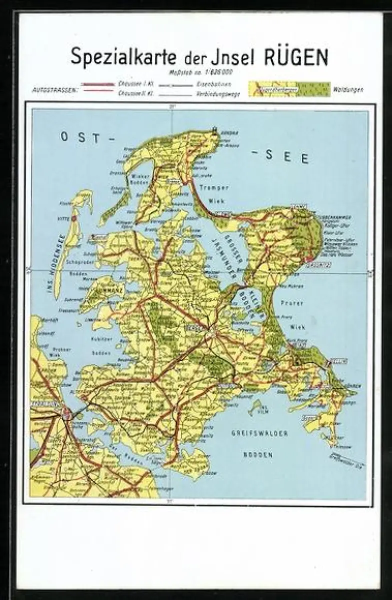 AK Bergen / Rügen, Spezialkarte der Insel Rügen, Landkarte