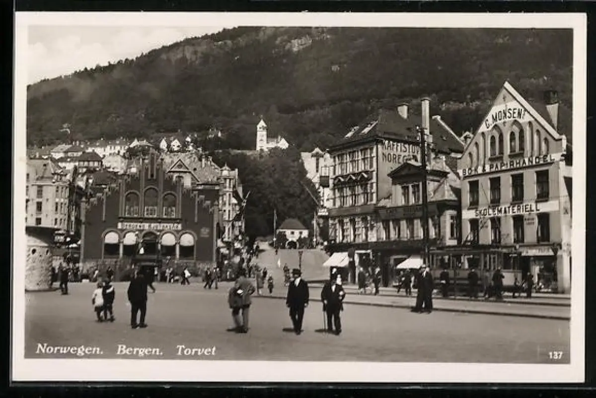 AK Bergen, Torvet, Bok & Papirhandel C. Monsen
