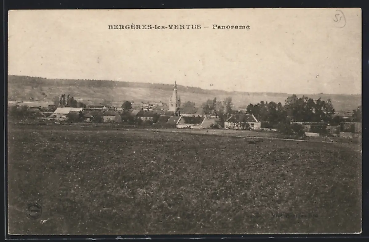 AK Bergères-lès-Vertus, Panorama du village avec vue sur l`église