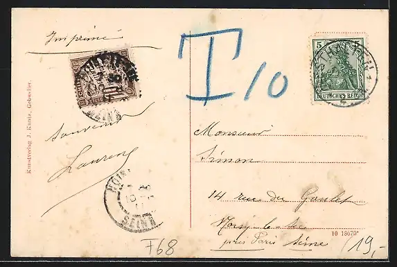 alte Ansichtskarte, gelaufen 1911, Eckknicke re., guter Zustand