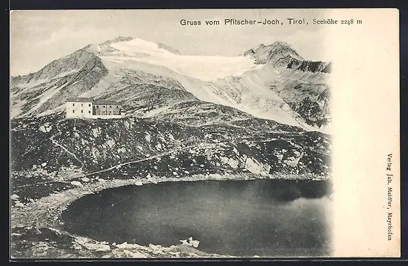 AK Berghütte Seehöhe 2298 mit Bergsee und Blick auf das Pfitscher Joch