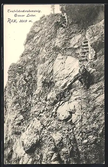 AK Bergsteiger auf der Leiter am Teufelsbadstubensteig an der Raxalpe