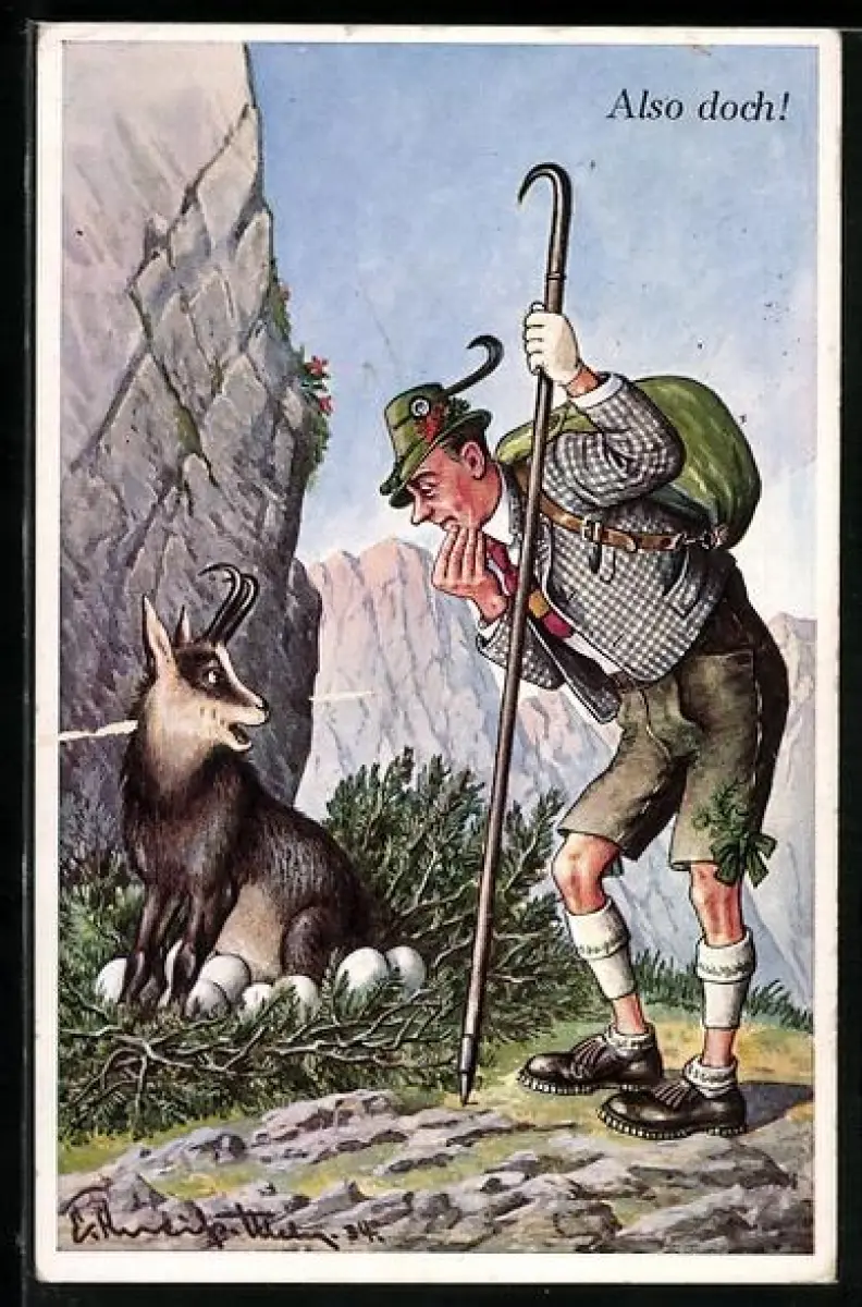 AK Bergsteiger mit einer Gämse