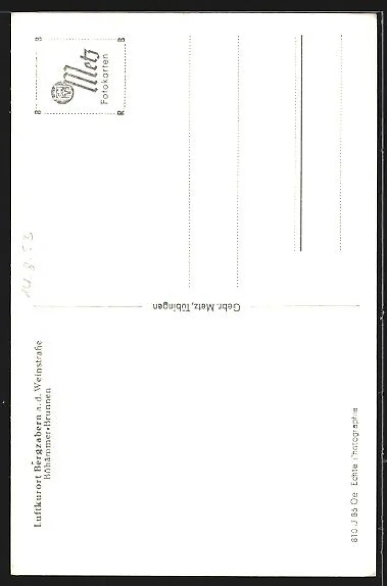 Personenbezogene Daten auf der Rückseite der Karte wurden durch blauen Textmarker unkenntlich gemacht. Die blauen Stellen sind auf die Vorderseite durchgeweicht und wirken sich negativ auf das Postkartenfoto aus