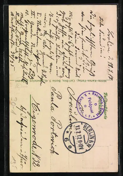 gelaufen 1917 als Feldpost, guter Zustand