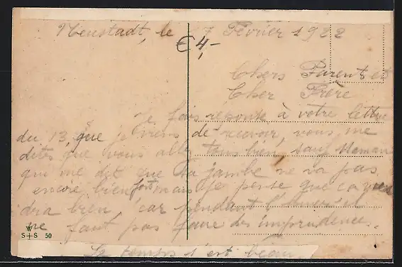 alte Ansichtskarte, ungelaufen, Eckknick re. oben, rückseitig Klebe- und Papierreste, rückseitig Oberflächenschaden, guter Zustand