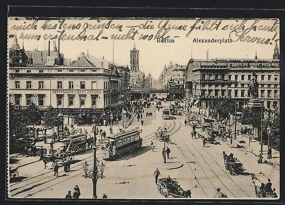 AK Berlin, Alexanderplatz mit Berolina, Strassenbahnen