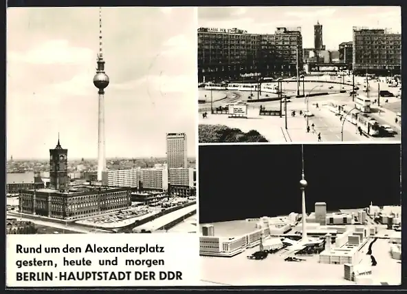 AK Berlin, Alexanderplatz mit Hochhaus und Fernsehturm, Modell